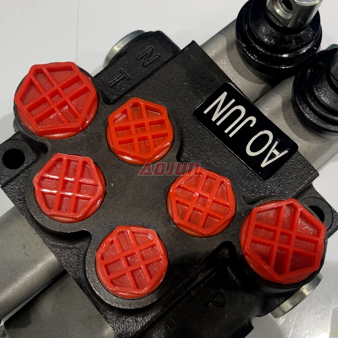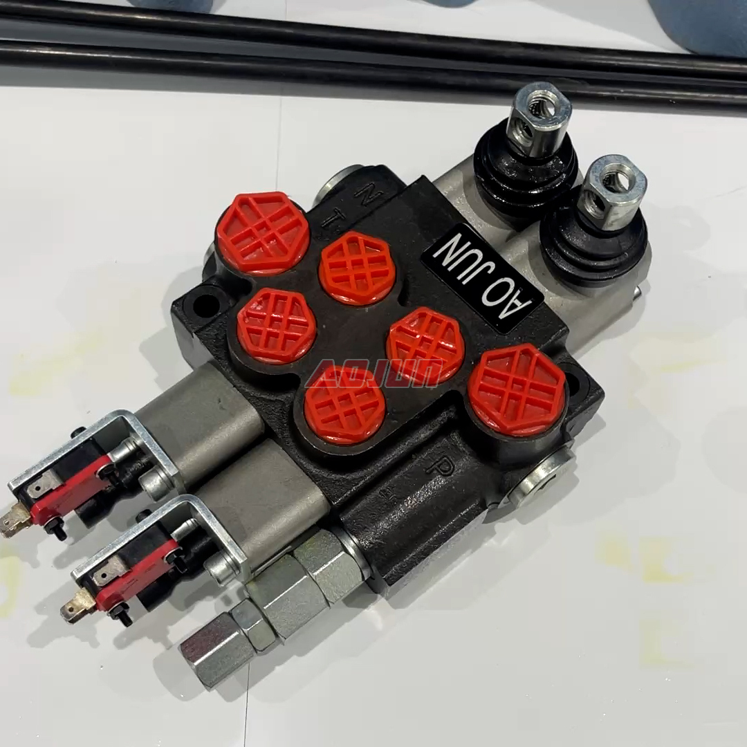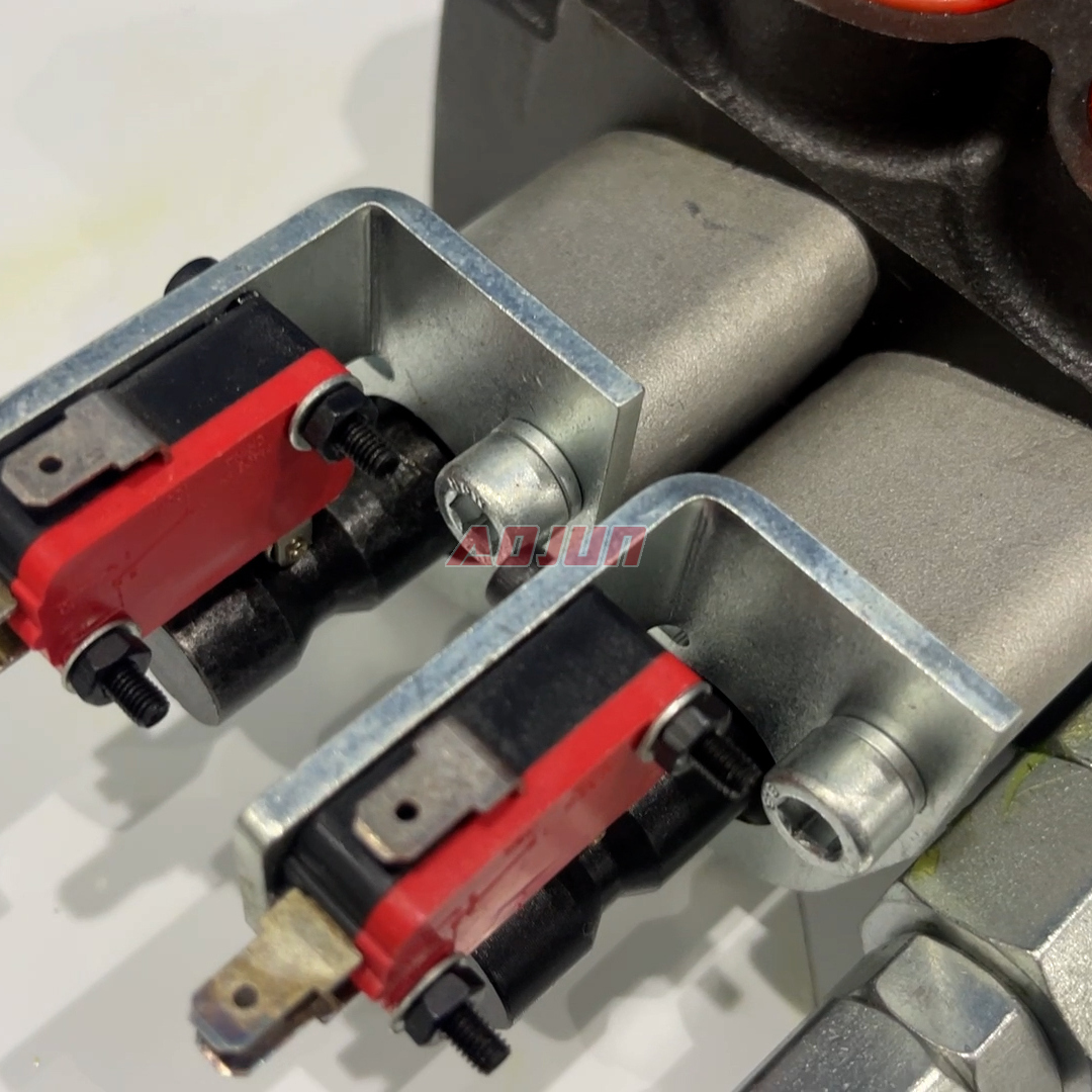 Designed for mobile hydraulics, this 2-section manual valve provides reliable directional control for two actuators (cylinders or motors) in loaders, forklifts, telehandlers, aerial platforms and other equipment. The single-piece body design helps reduce external leakage points and simplifies installation. Key performance includes 40 L/min (10.5 gpm) rated flow, up to 250 bar (3600 psi) pressure capability, viscosity range 15–75 cSt, and ambient temperature tolerance from -40°C to +80°C for harsh jobsite operation. Micro-switch functionality supports electrical signaling for interlocks, safety logic, or controller/PLC feedback. Connection flexibility is supported via multiple port standards for inlet/outlet/working ports, including NPT (3/8, 1/2), G (G3/8, G1/2), metric (M18×1.5, M22×1.5) and SAE (SAE 8, SAE 10). Suitable for OEM manufacturing, customization, private label/branding, wholesale supply, and distributor/agent sourcing worldwide.