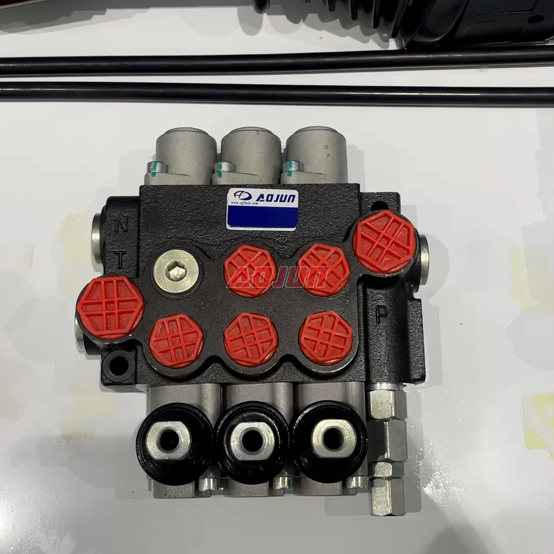 Key specs: 3 spool/3 section manual control, monoblock structure, rated flow 40 L/min (10.5 gpm), max pressure 250 bar (3600 psi). Fluid & environment compatibility: operating viscosity 15–75 mm²/s, ambient temperature -40°C to +80°C, suitable for both cold-start and high-heat job sites. Advantages: monoblock body helps reduce leakage points and keeps the assembly compact for tight installations; manual levers provide direct, dependable actuation for multi-function circuits (lift/tilt/aux). Typical applications: loaders, telehandlers, forklifts, aerial platforms, skid steers, mini/midi excavators, backhoe loaders, and tractor front-end loader attachments. OEM/ODM support: available for manufacturing, private label, customization, wholesale, and distributor/agent cooperation; options can include port thread adaptation, lever/handle style, and spool function configuration to match machine hydraulics.