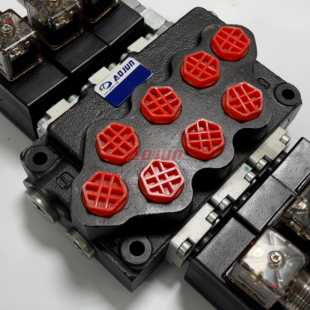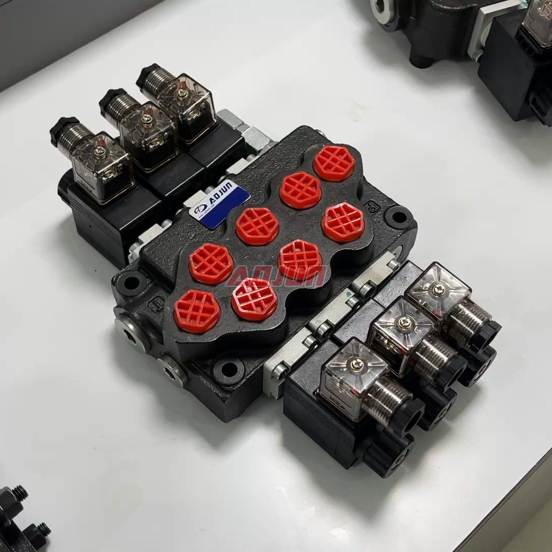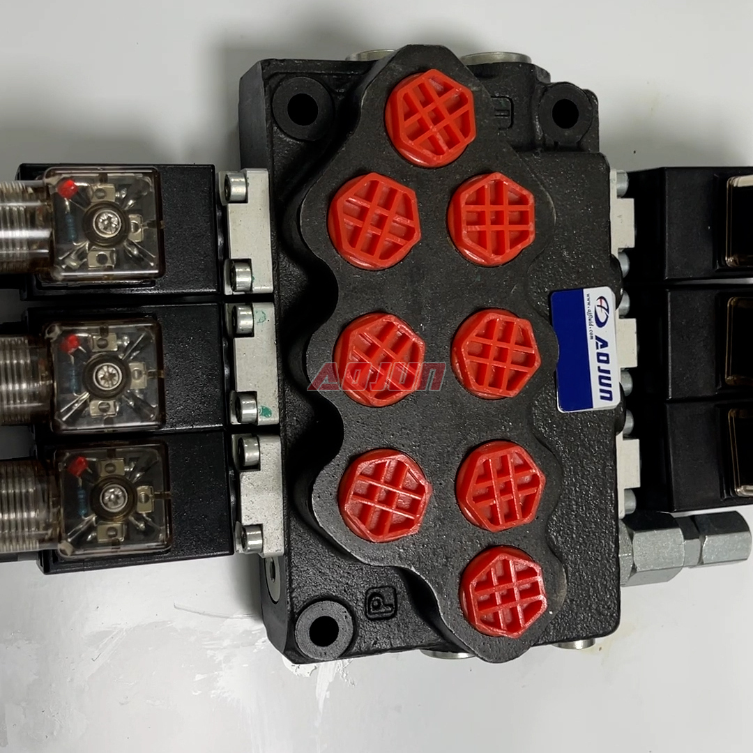 This solenoid-controlled monoblock valve integrates three spool sections in a single compact body to simplify plumbing and reduce leakage points versus sectional stacks. Rated flow is 40 L/min (10.5 gpm) with maximum pressure up to 315 bar (4600 psi), suitable for demanding mobile equipment functions such as boom, bucket, steering, stabilizers, clamps, outriggers, and auxiliary circuits.