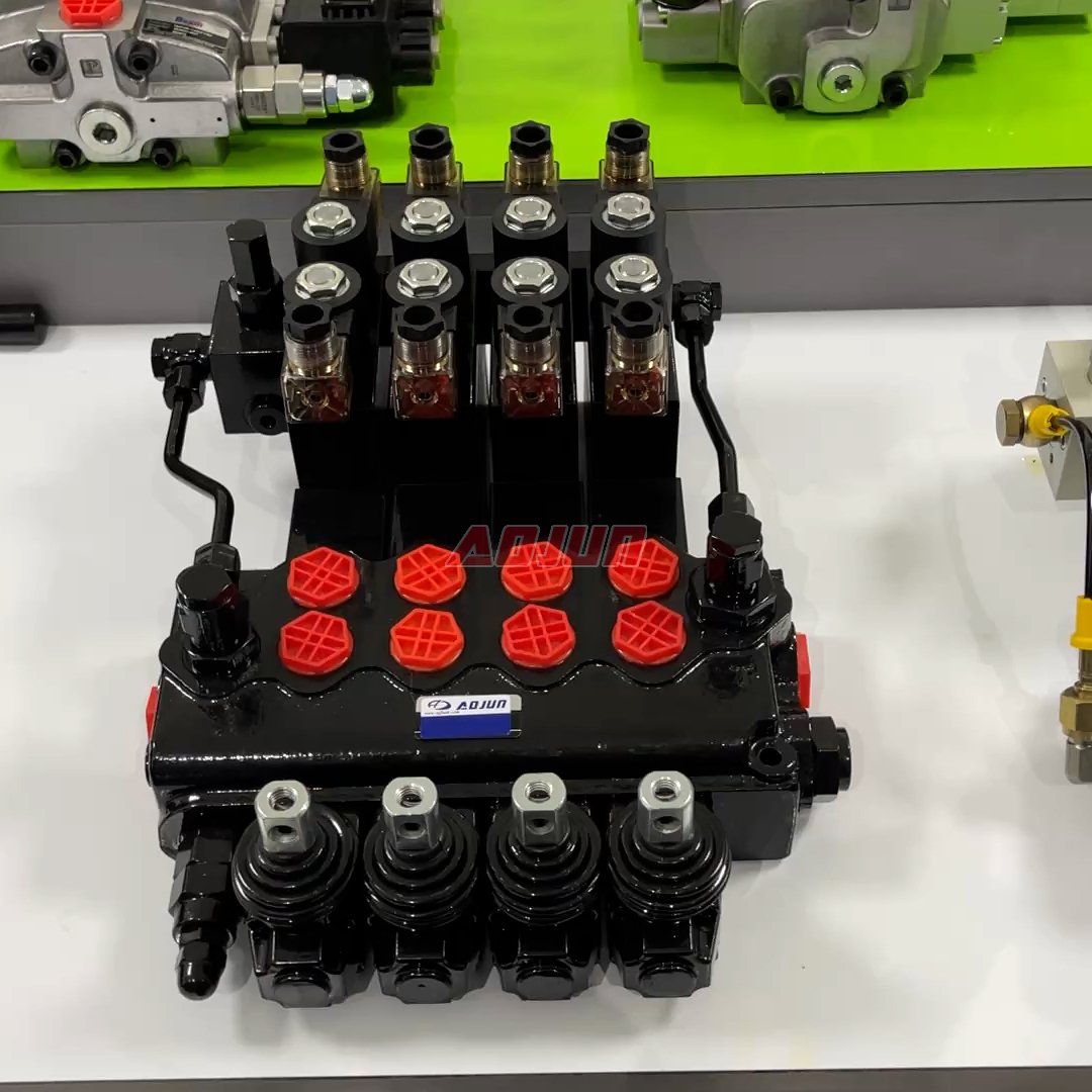 4-section electro-hydraulic monoblock directional control valve designed for mobile equipment requiring compact packaging, reliable multi-function actuation, and stable performance under high pressure. Rated 70 L/min with max pressure up to 315 bar for demanding duty cycles.