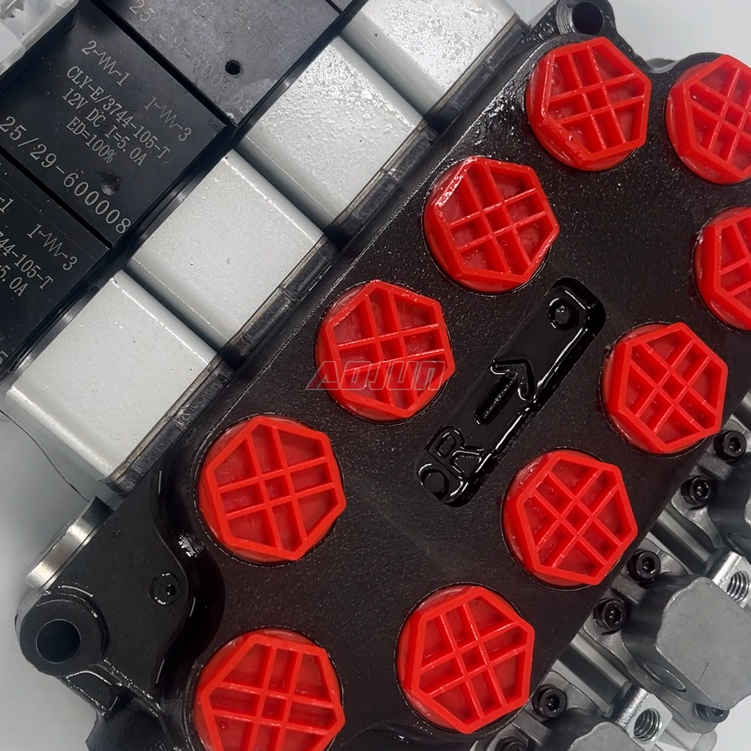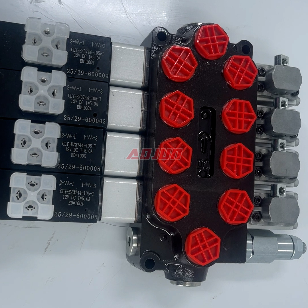Structure: 4-section monoblock design reduces leak paths and simplifies installation, ideal for space-limited mobile machinery. Control: solenoid actuation for remote/electro-hydraulic operation plus manual control for on-site operation and backup needs. Performance: rated flow 45 L/min (11.8 US gpm) supports multiple hydraulic functions; maximum pressure 315 bar (4600 psi) fits high-pressure systems. Use cases: suited for lifting, steering, tilting, auxiliary circuits and other multi-function tasks on telehandlers, forklifts, loaders, skid steers, mini excavators, aerial platforms and similar equipment. Supply capabilities: factory direct manufacturing for wholesale, OEM/ODM, private label and customization; suitable for distributors, agents, importers and trading partners serving global markets.
