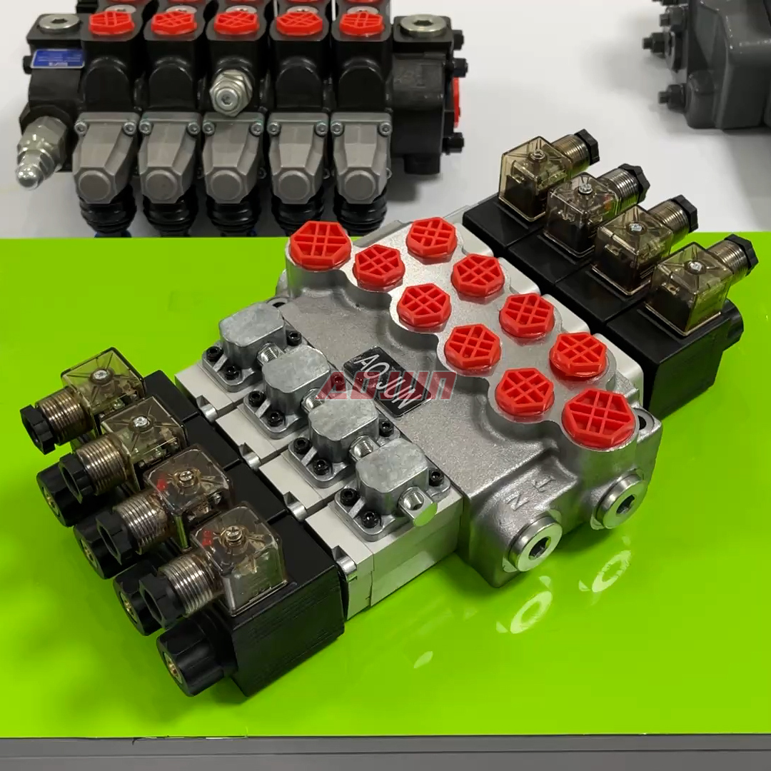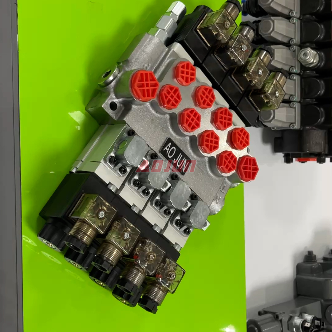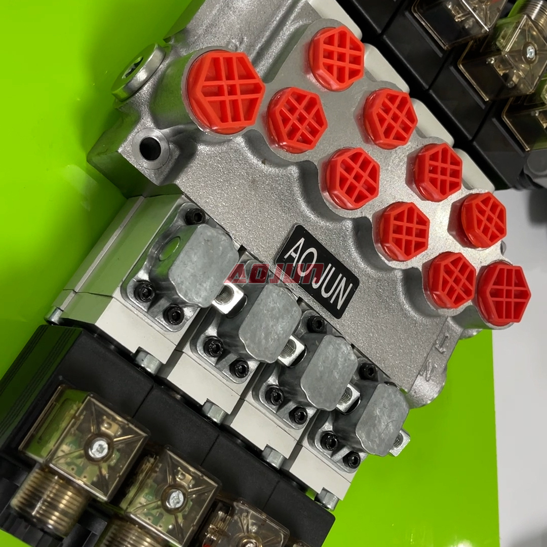 Benefits: compact monoblock body reduces external leakage points versus multi-piece sectional stacks; electric solenoid actuation enables easy integration with PLC/ECU control and remote operation; suitable for multi-function circuits where four independent actuator functions are required.