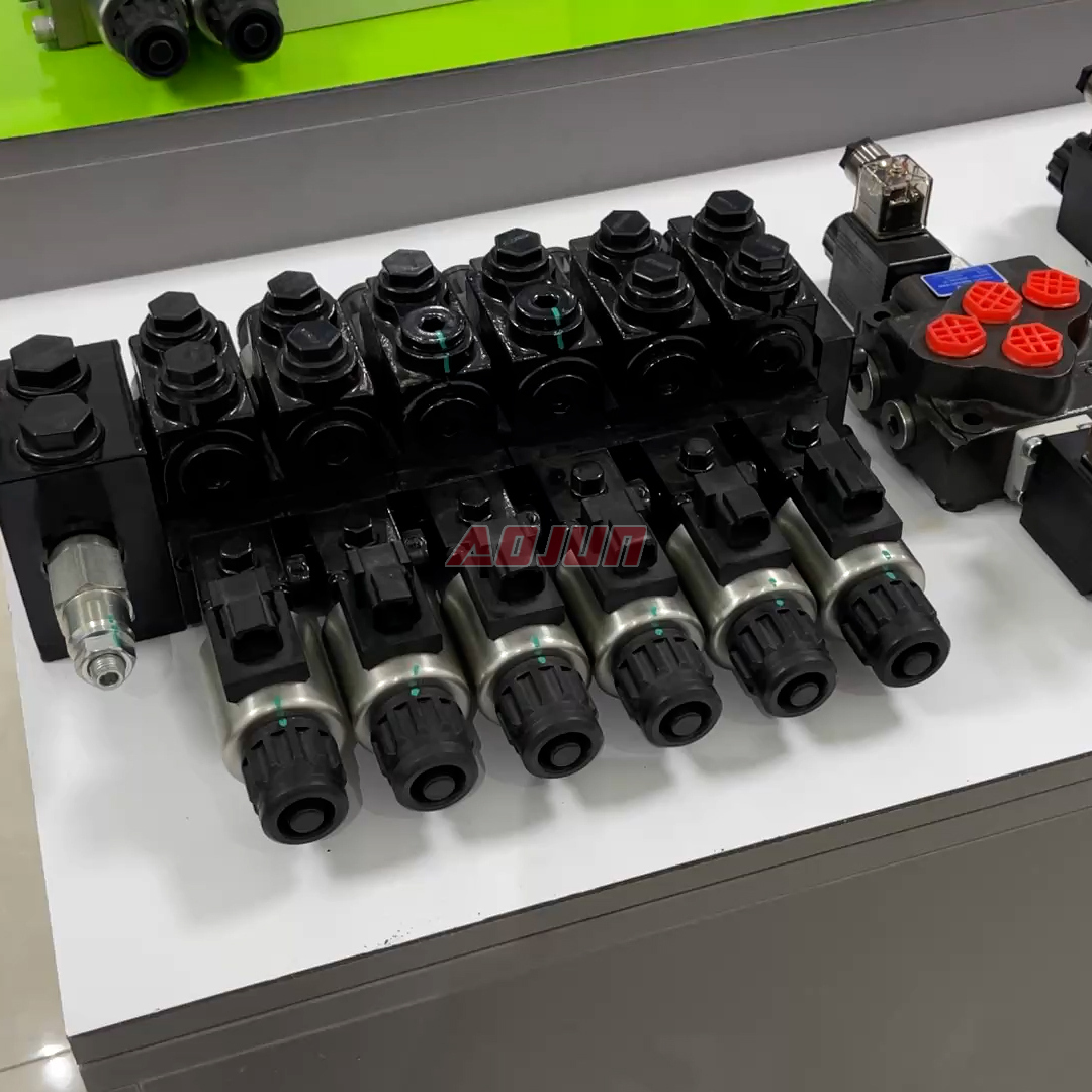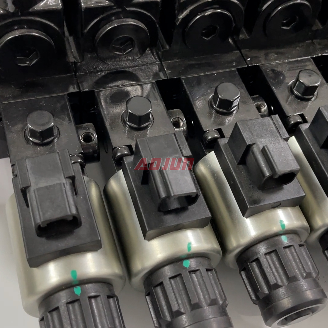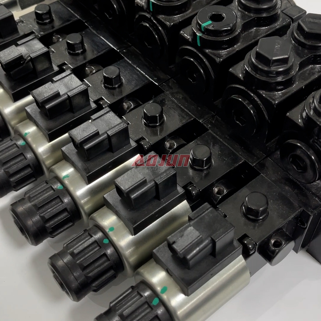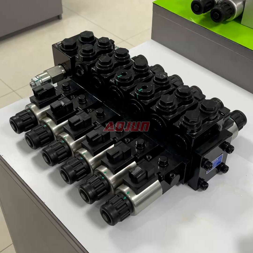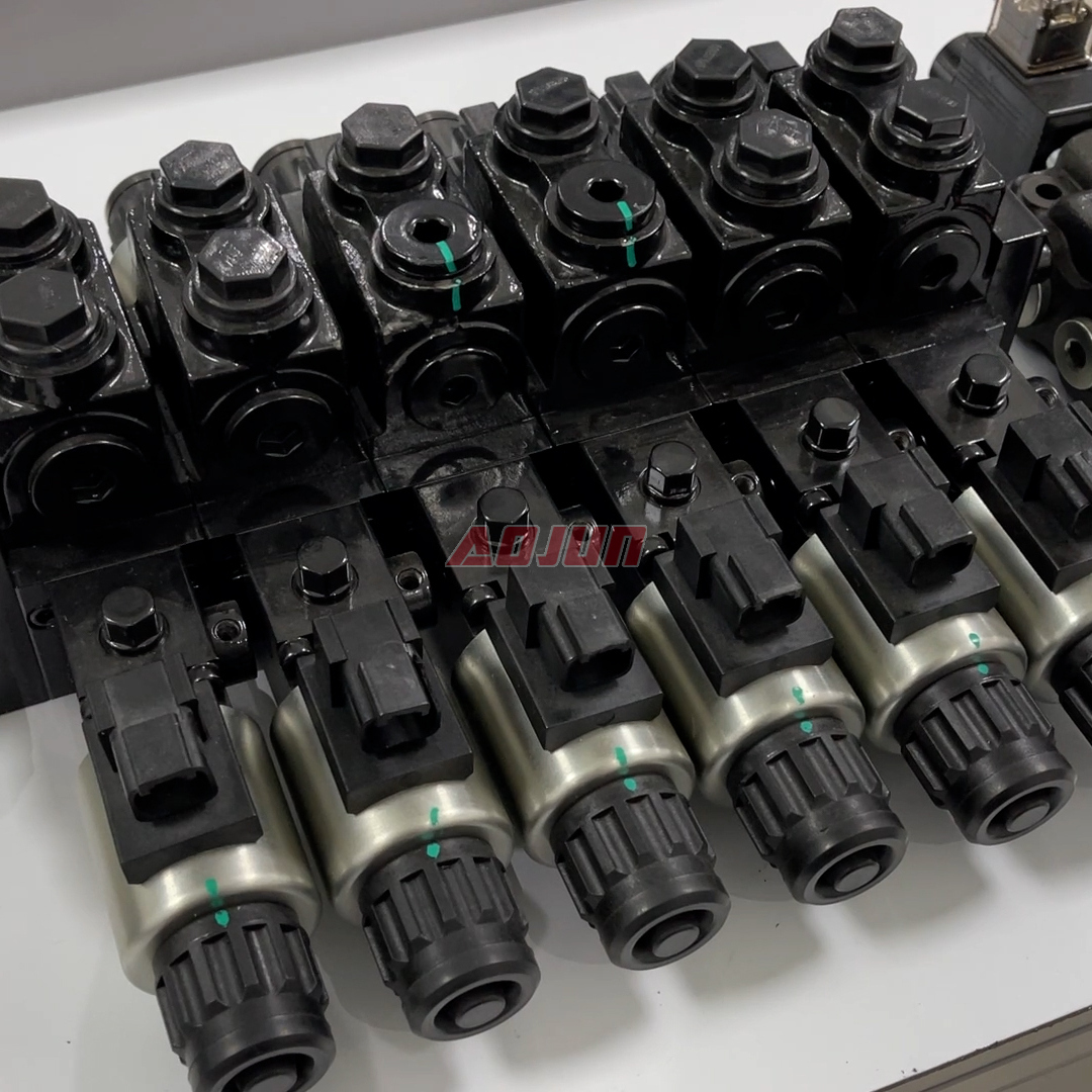 A 6-section sectional hydraulic directional valve with solenoid actuation, designed for multi-function mobile machinery. Rated at 50 L/min flow and up to 160 bar pressure, it supports stable operation across common hydraulic oil viscosities and harsh ambient temperatures.