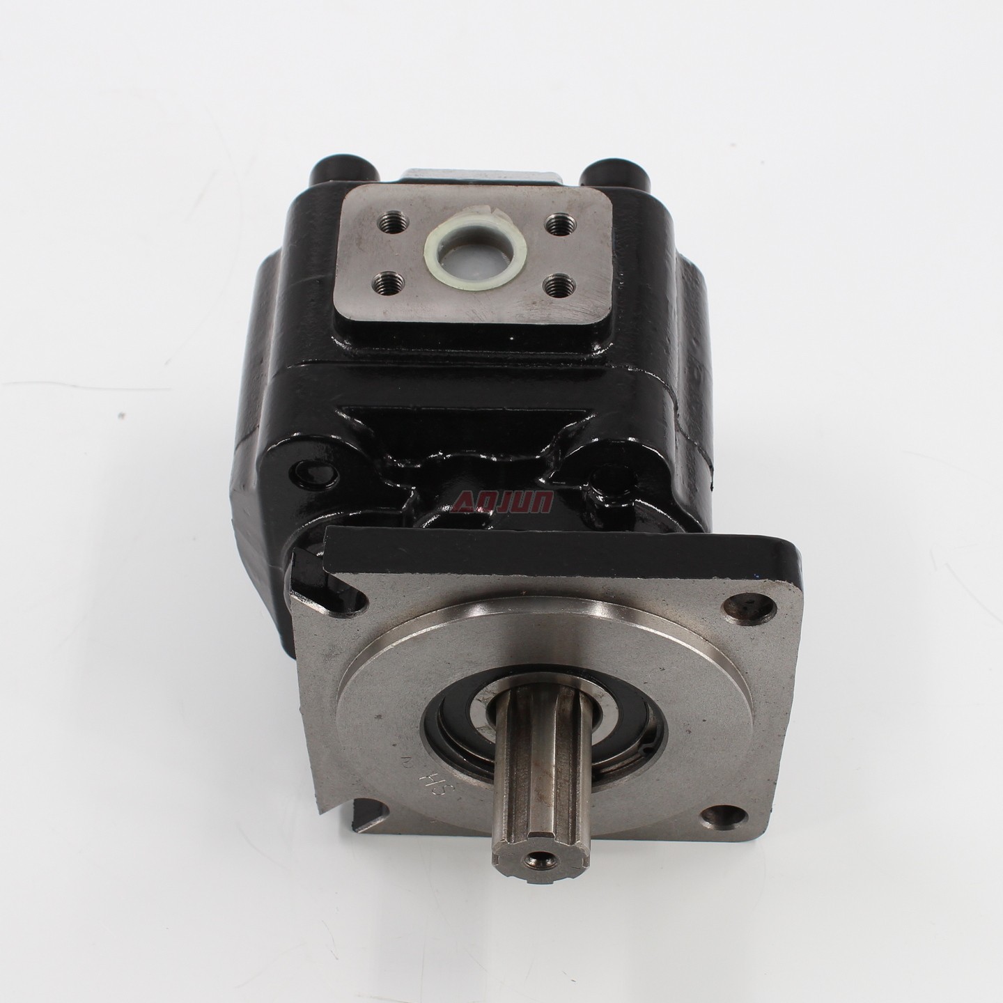 Key specs: 63 cc/rev displacement; rated pressure 20 MPa (2900 psi) and max pressure 25 MPa (3625 psi); rated speed 2000 r/min and max speed 2250 r/min. Structure: external gear pump for stable flow delivery and robust operation in mobile hydraulics. Materials & interface: cast iron housing for durability; ISO-4 mounting holes for common flange compatibility; H-type rectangle spline shaft for reliable torque transmission.
