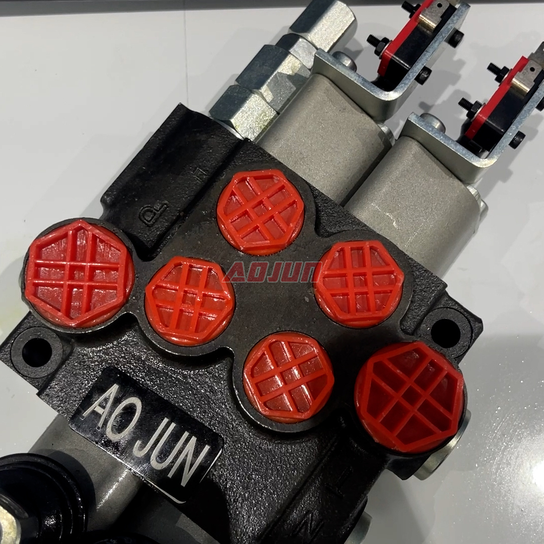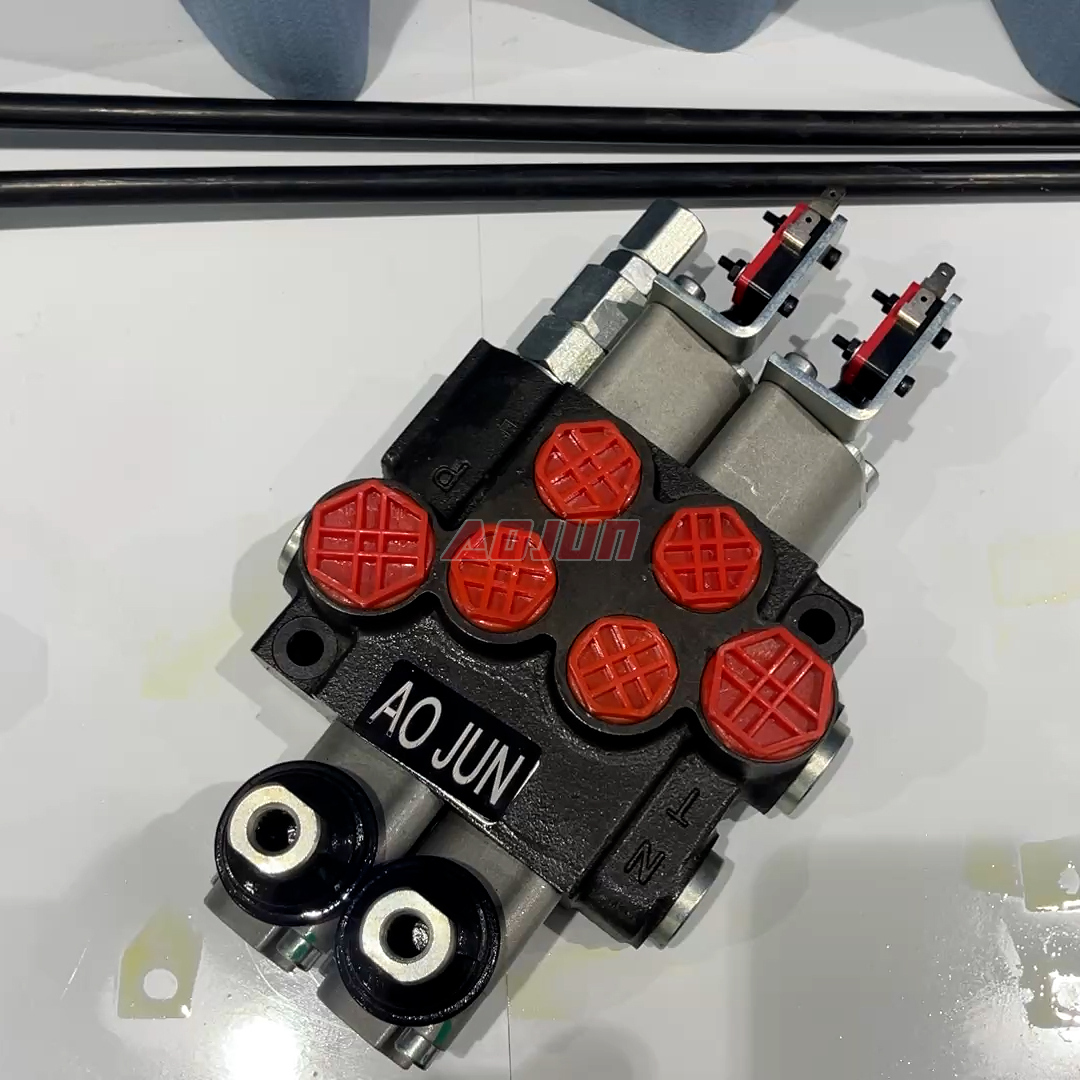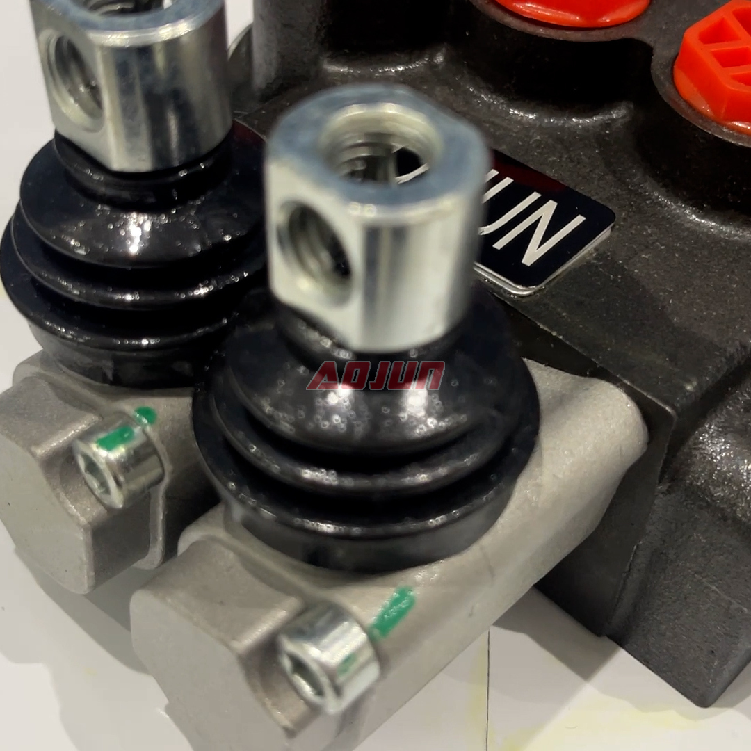 Designed for mobile hydraulics, this 2-section manual valve provides reliable directional control for two actuators (cylinders or motors) in loaders, forklifts, telehandlers, aerial platforms and other equipment. The single-piece body design helps reduce external leakage points and simplifies installation. Key performance includes 40 L/min (10.5 gpm) rated flow, up to 250 bar (3600 psi) pressure capability, viscosity range 15–75 cSt, and ambient temperature tolerance from -40°C to +80°C for harsh jobsite operation. Micro-switch functionality supports electrical signaling for interlocks, safety logic, or controller/PLC feedback. Connection flexibility is supported via multiple port standards for inlet/outlet/working ports, including NPT (3/8, 1/2), G (G3/8, G1/2), metric (M18×1.5, M22×1.5) and SAE (SAE 8, SAE 10). Suitable for OEM manufacturing, customization, private label/branding, wholesale supply, and distributor/agent sourcing worldwide.