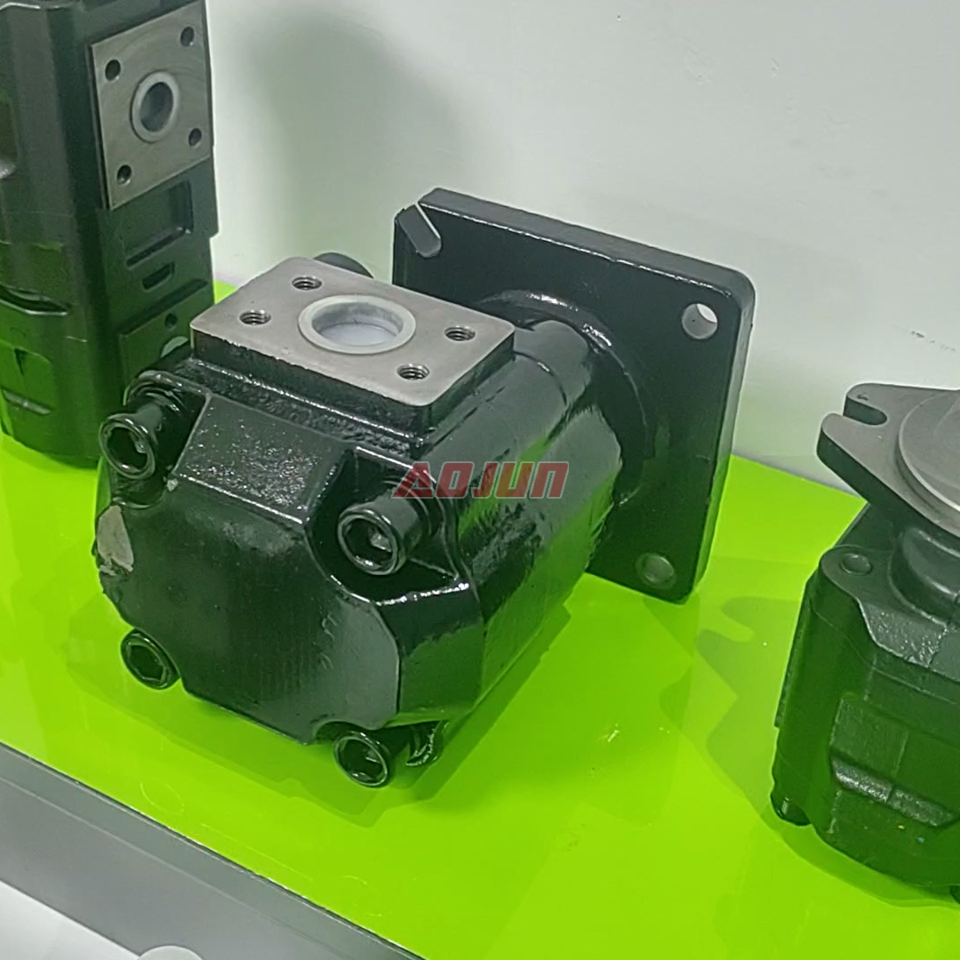 Key specifications: 63 cc/rev displacement; rated pressure 16 MPa (2320 psi), max pressure 20 MPa (2900 psi); rated speed 2000 r/min, max speed 2200 r/min. Construction: internal gear structure for smooth output and low pulsation; robust cast-iron housing for durability in harsh duty cycles. Mounting/connection options: B-square flange version; shaft choices include rectangle spline (H) or plain key (P); rotation available in right (clockwise) or left (counter-clockwise) to match system layout. Typical applications: lift and drive hydraulics, auxiliary circuits, steering and implement functions on forklifts, telehandlers, skid steer loaders, compact excavators/loaders, aerial platforms, tractors and other mobile machinery. Supply capability: factory direct manufacturing with OEM/ODM, private label, customization, bulk wholesale, and distributor/agent sourcing for global markets.
